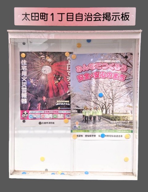 アクリル白色ベースにマグネット使用可能なアルミ複合板を使用し、町内・学区の掲示板を作成しました。