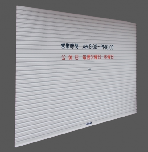 既存のシャッターに営業時間等の書き文字施工を行いました!